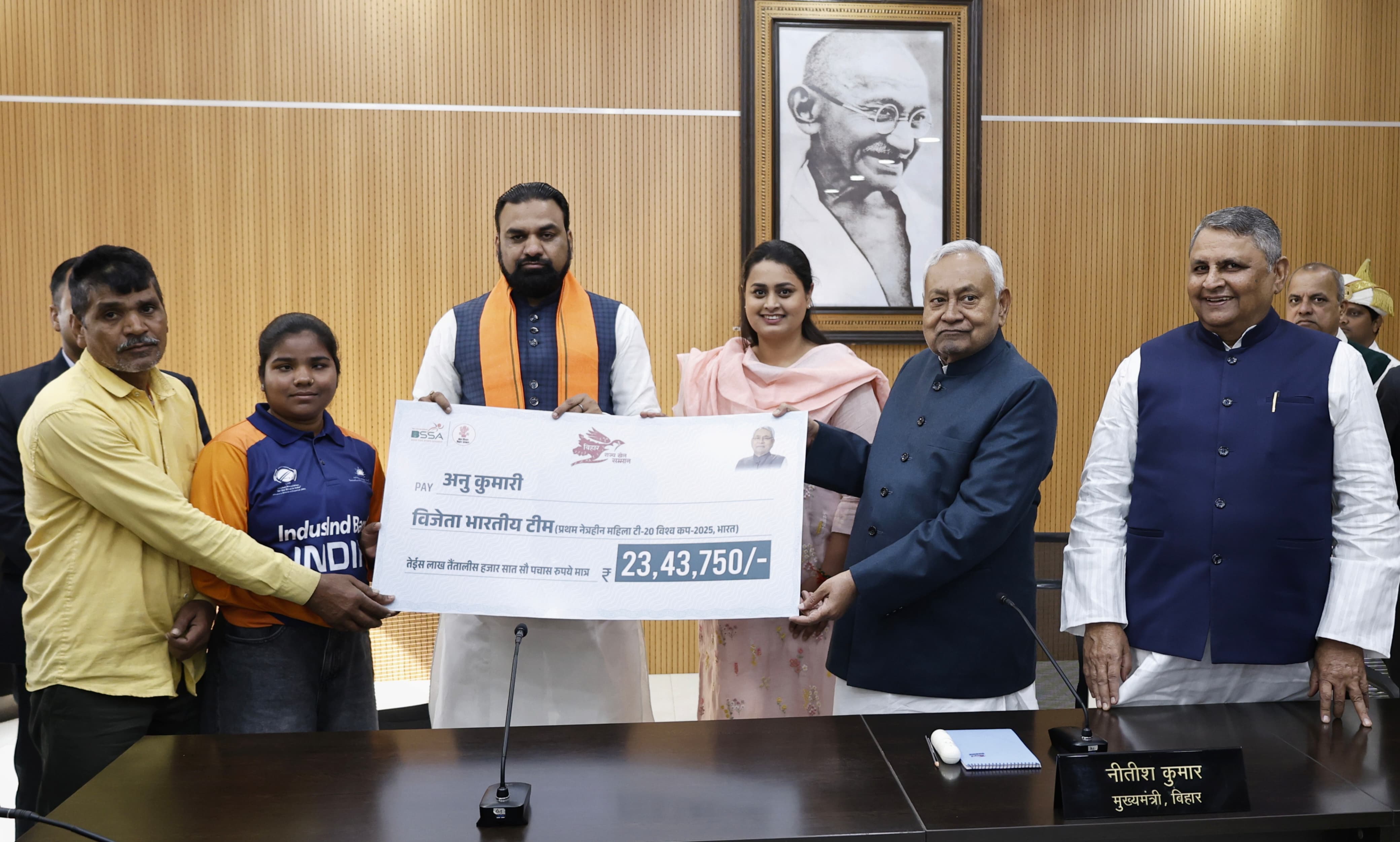 मुख्यमंत्री ने प्रथम नेत्रहीन महिला टी-20 विश्व कप विजेता खिलाड़ी अनु कुमारी को किया सम्मानितपटना, 06 फरवरी 2026।मुख्यमंत्री श्री नीतीश कुमार ने आज 01 अणे मार्ग स्थित ‘संकल्प’ सभागार में प्रथम नेत्रही…